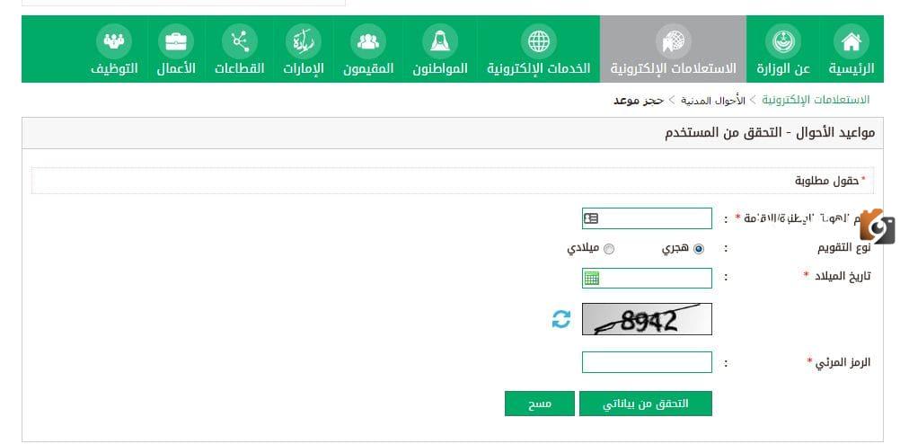 الاستعلام عن موعد الأحوال المدنية