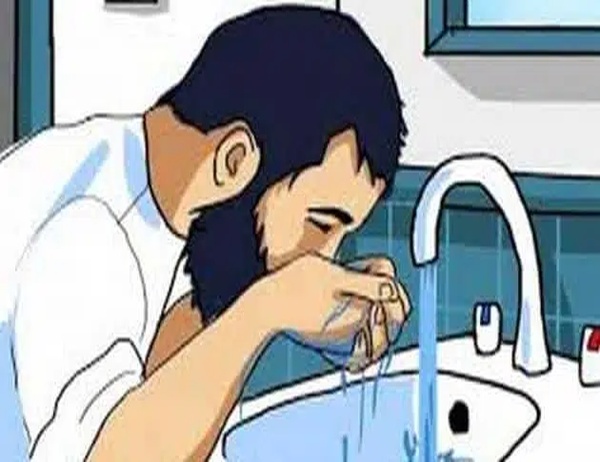 - يغسل الشخص وجهة بشكل كامل من حتى الأذن ثلاث مرات.