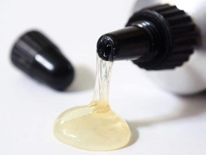 - مزيل طلاء الأظافر أو ما يسمى الأسيتون هو عنصر مهم تجده في علب التجميل التي تمتلكها الفتيات وهو فعال لإزالة بقع الغراء ، انقع قطعة من القطن وضعها مباشرة على البقعة، يؤدي استخدامه إلى إزالة لون الملابس لذلك ينصح باستخدامه فقط على الملابس البيضاء ، قم بإجراء ذلك على مكان غير مرئي من القطعة لمعرفة الآثار الجانبية التي يمكن أن تحصل.