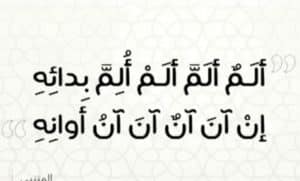 - أَلَمٌ أَلَمَّ أَلَمْ أُلِمَّ بِدَائِهِ **** إِنْ أنَّ آنٌّ آنَ آنُ أَوَانِهِ