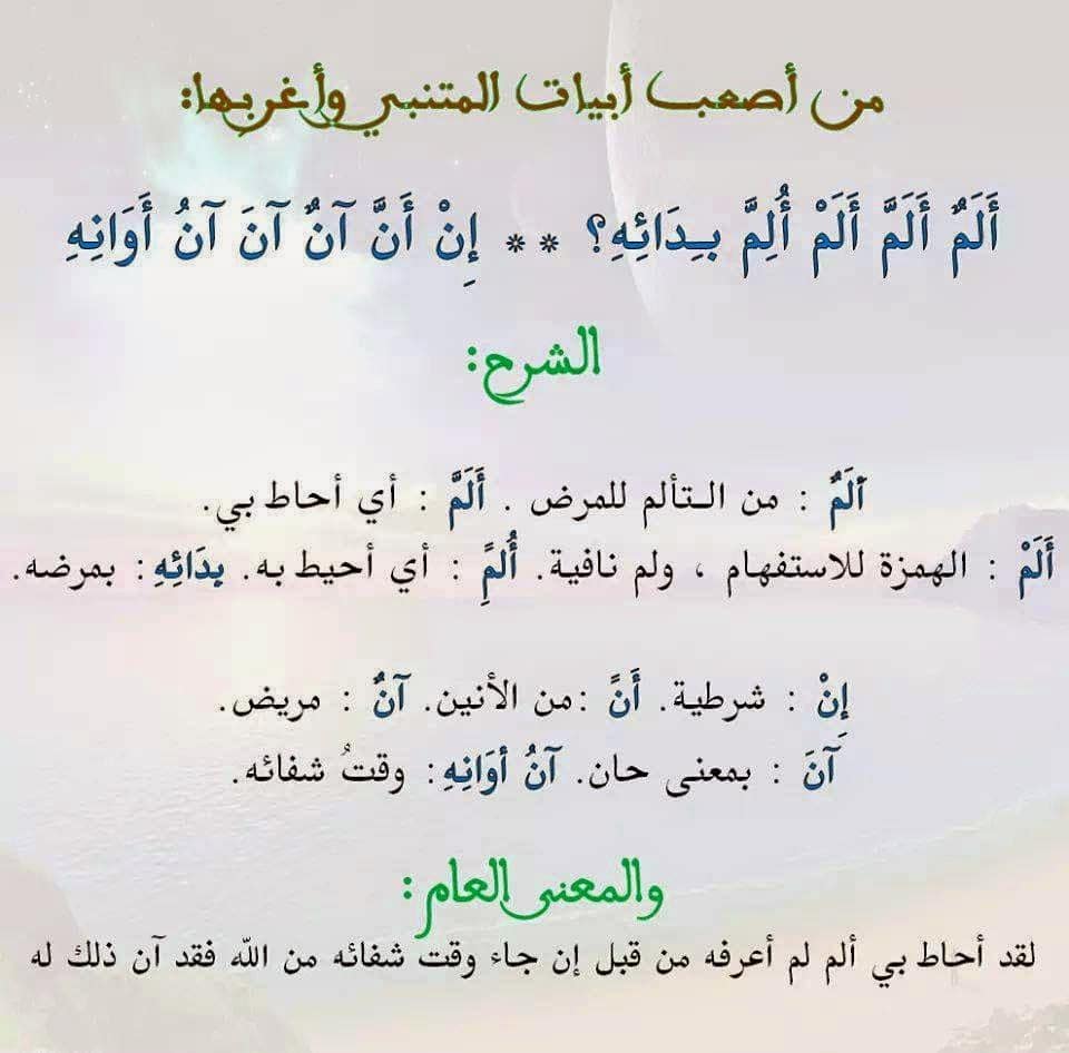 تتميز اللغة العربية بثراء الكلمات، والتعبير، وجمال ألحانها، مما جعلها متوجة على رأس من حولها من اللغات، وحتى باتت لغة ذات إقبال على فهمها وتعلمها، من غير العرب، ولا تخلو اللغة العربية من غرابة الألفاظ والقصائد الغريبة ومنها قصيدة للمتنبي: