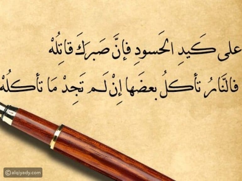 - اصبر على كيد من يحسدك فبصرك أنت تقتله، كالنار التي تشعلها ولم تضع فيها شيئا تراها تأكل في بعضها البعض؛ لأنها لا تجد ما تأكله.