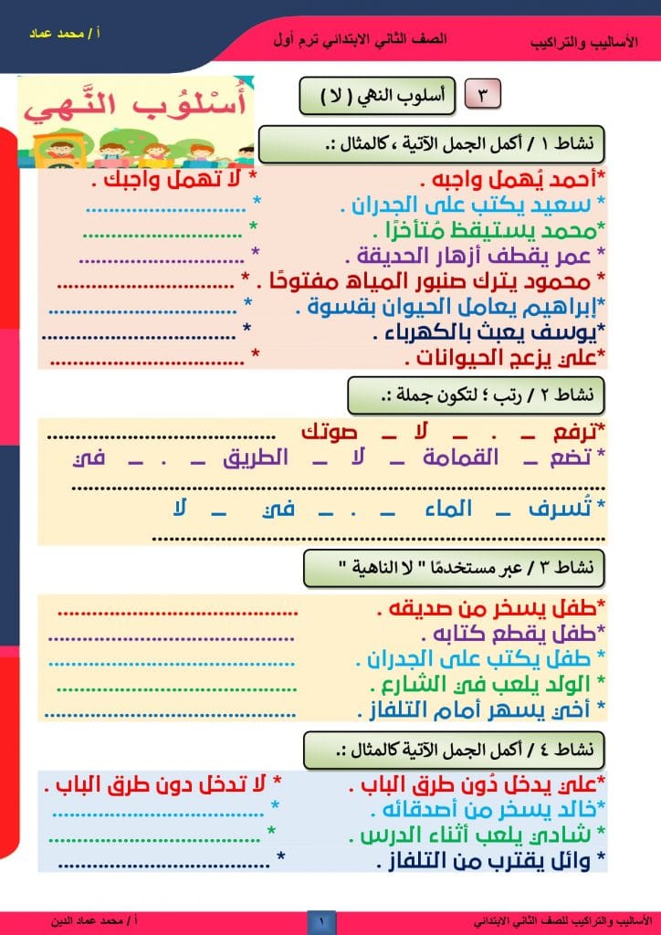 كما تعرفنا سابقا أسلوب النهي تعريفه: طلب الكف عن الفعل على وجه الاستعلاء. صيغه: للنهي صيغة واحدة وهي: المضارع المسبوق بلا الناهية. وفي الآتي سوف نقدم لكم مجموعة من تدريبات على أسلوب النهي :