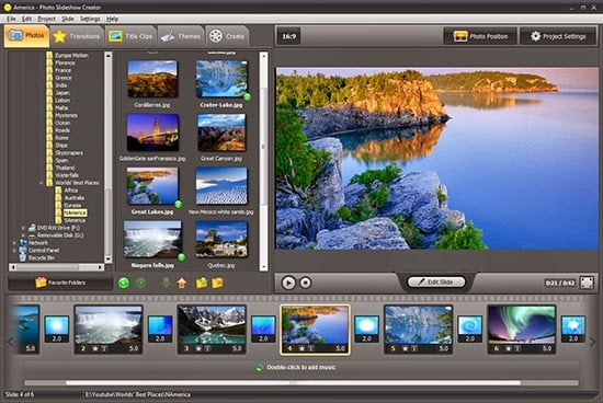 - باستخدام هذا البرنامج يمكنك إضافة الآلاف من الصور لعمل فيديوهات احترافية ودمج الموسيقى والأغاني وحفظها على جهاز الكمبيوتر، أو مقاطع فيديو محمولة وملفات فيديو لجميع الأجهزة المحمولة أو