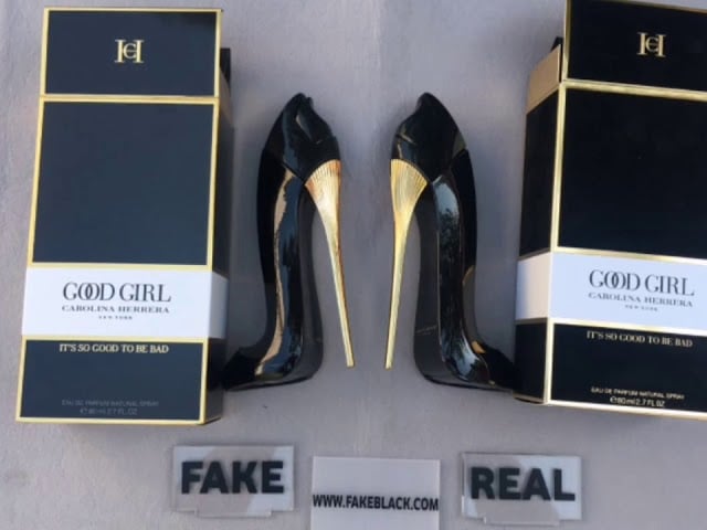 - عبوة عطر جود جيرل الاصلي يبدو لونها أكثر وضوحا عن المقلد، ولون عبوة العطر المقلد باهتا.