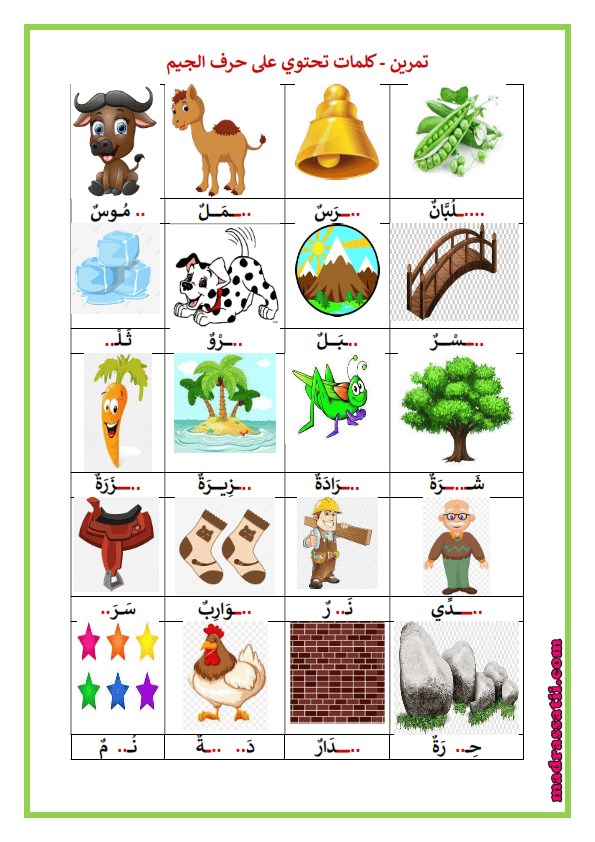 نقدم لكم مجموعة كلمات تبدأ بحرف الجيم لمساعدة أطفالكم على كتابة وقراءة حرف الجيم، إليكم كلمات تبدأ بحرف ج، كلمات تبدأ بحرف الجيم: