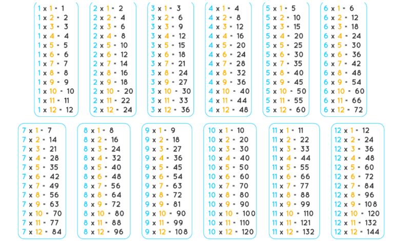 أساسيات جدول الضرب