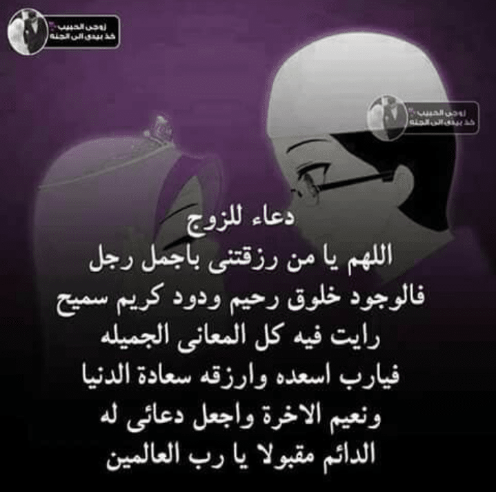 - اللهم طهّر قلب زوجي واجعله كما تحب، اللهم جمّلني في نظره وجمّله في نظري، واحفظه لي، وأبعد عنه الضُّر ورفقة السوء .
