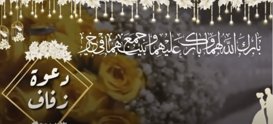 - بارك الله لهما وجمع بينهما بخير يسعدني ويشرفني دعوتكم لحضور زفاف ابنتي “اسم العروس” إلى الشاب “اسم العريس” وذلك بمشيئة الله مساء يوم “اسم اليوم” الموافق “التاريخ”.