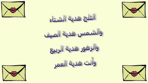 - لو تعلم كم يدفئني بردك، ويُلهبني جمر حُبك، وترويني قطرات شتائك، وتنعشني أنسام رياحك، وتمتعني ألوان طيف قزحك.