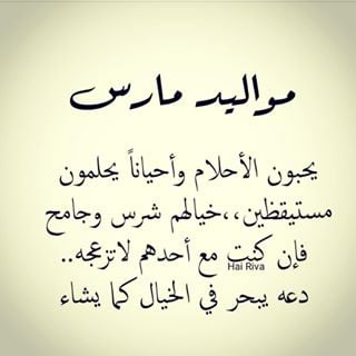 - يا حياتي مواليد مارس مواليد السعاده كل عام وأنت بألف بألف خير وياعسى أمانيك تتحقق سنه ورا سنه كل عام وانت بخير وصحه وعافية وعقبال 100 سنه.
