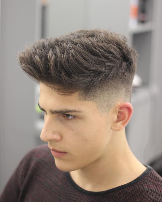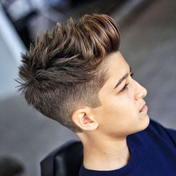 - شعر الفتى ناعم وحالق على الجوانب، وتم تصفيفه بطريقة تجعله يقف للأعلى بشكل جذاب، هذا التصميم يعطيه مظهرًا جريئًا ومميزًا.