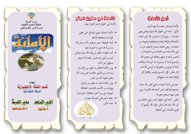 مطويات عن الامانة للاطفال