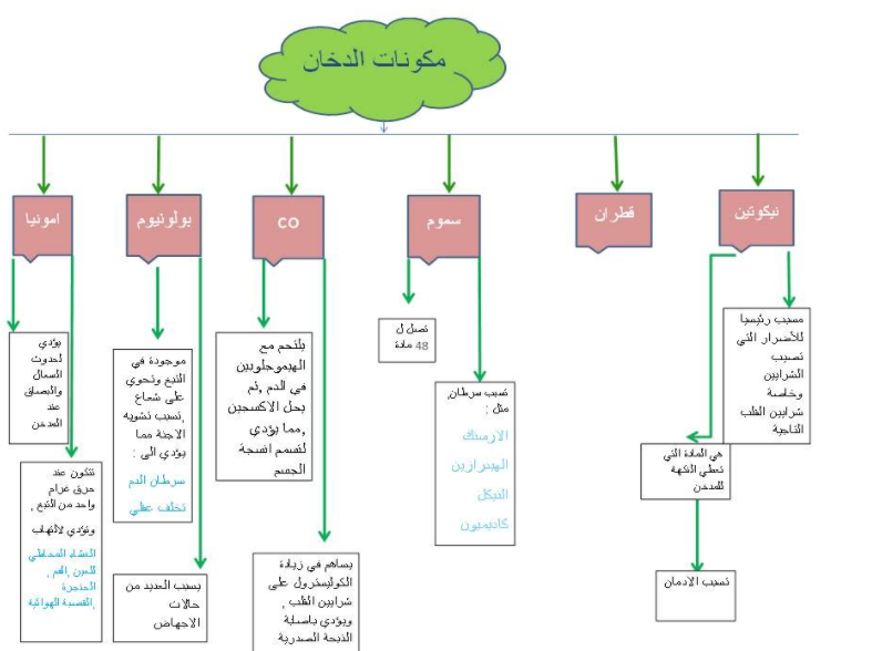 إليكم في هذه الفقرة خريطة مفاهيم عن التدخين وبعض الحقائق عن التدخين: