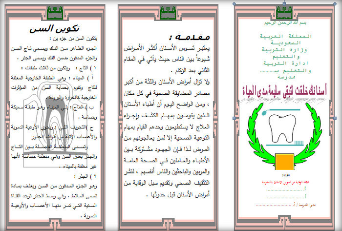 سنقدم إليكم اليوم مطويات عن عن صحة الفم والاسنان جاهزة للطباعة ، فنظافة الاسنان أمر ضروري مثل المحافظة على النظافة الشخصية للجسم، ولذلك سنقدم إليكم اليوم في هذا الفقرة مطويات عن صحة الفم والاسنان على اقرأ من خلال السطور التالية :