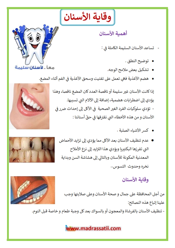 الموسوعة المدرسية هو موقع متميّز و شامل متخصص في تقديم المراجع والبحوث والروائز والملفات التعليمية والتعلمية و الامتحانات والفروض للمرحلة الأولى والثانية من التعليم الأساسي والمرحلة الثانوية. ونقلا عن هذا الموقع سوف نعرض لكم من خلال السطور التالية طرق المحافظة على الأسنان ، من أبرزها: