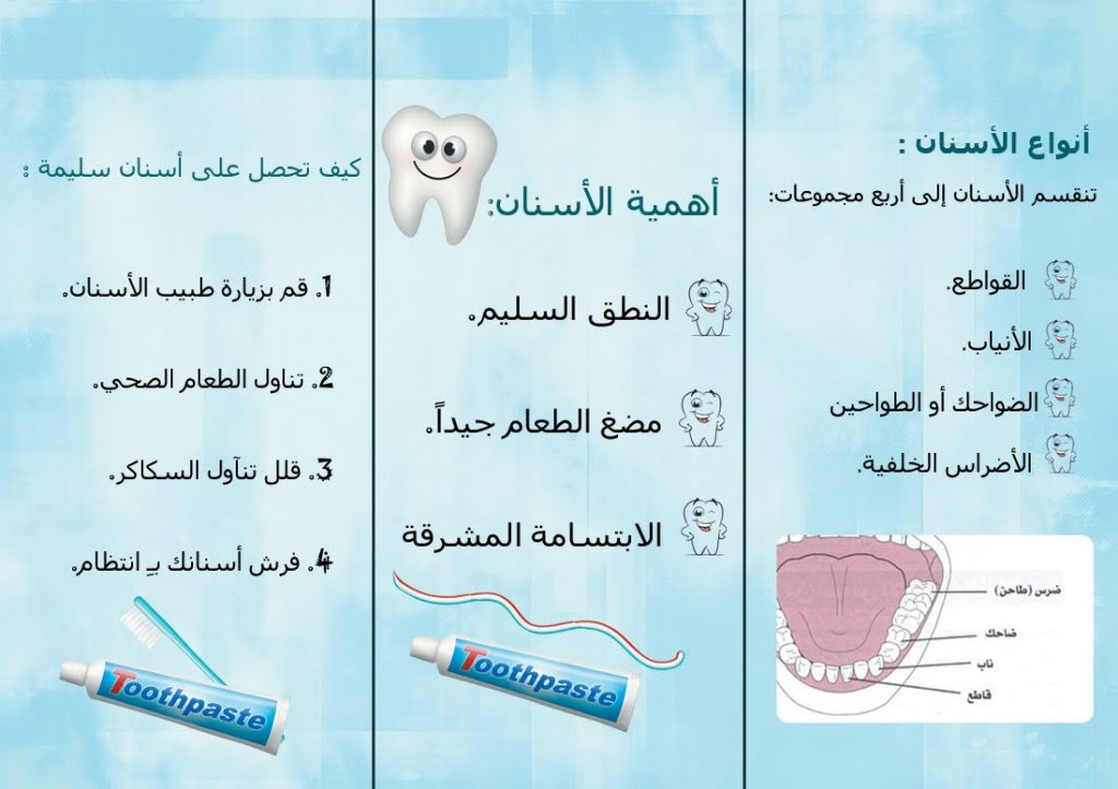 يقدم لكم موقعنا مطويات عن نظافة الاسنان ، و عبارات عن نظافة الاسنان قصير للاطفال ، و مطويات عن صحة الفم والاسنان ، و منشورات عن صحة الأسنان ، و المحافظة على الأسنان الموسوعة المدرسية ، و مطوية حول وقاية الأسنان ، تعتبر المطوية بأنها أحد أهم الوسائل المستخدمة في الكتابة بشكل عام ونشر المعلومات، وتستخدم المطوية بشكل كبير في عرض المعلومات والبيانات ، وفي هذا المقال سنتعرف على أفضل مطويات عن نظافة الاسنان، تابعوا القراءة .