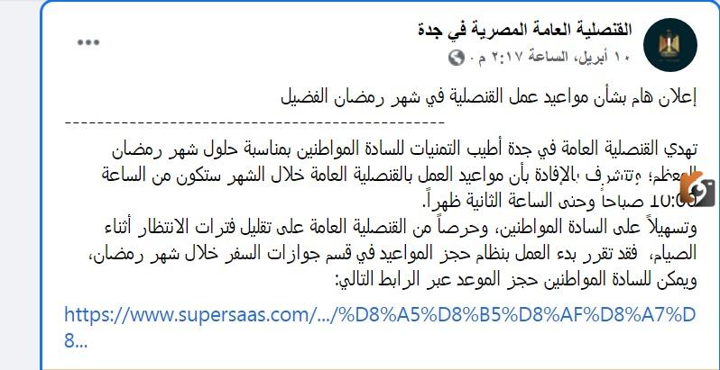 هل يتغير دوام القنصلية المصرية في جدة أثناء شهر رمضان